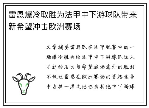 文章摘要:雷恩队在法甲联赛中的一场爆冷胜...
